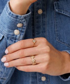 Sydney Evan Women’s Earrings Gold & Diamond Small Open Wings Ladybug Stud
