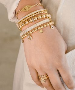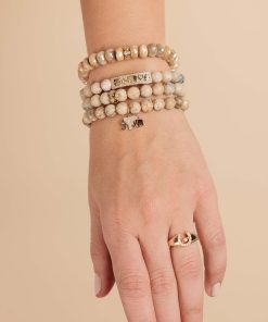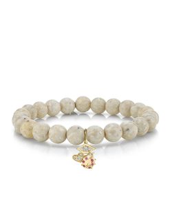 Sydney Evan Women’s Bracelets Gold & Diamond Love, Luck & Protection On Cream Jasper