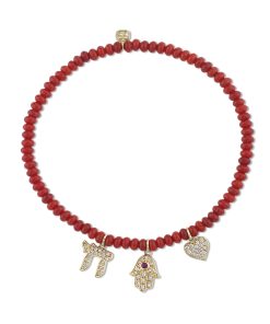 Sydney Evan Women’s Bracelets Gold & Diamond Love, Luck & Protection On Cream Jasper