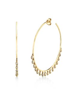 Sydney Evan Women’s Earrings Gold & Diamond Large Marquise Eye Fringe Hoops