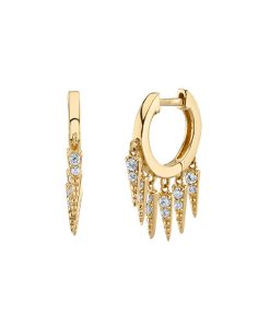 Sydney Evan Women’s Earrings Gold & Diamond Medium Fringe Huggie Hoops | Yellow Gold