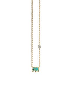 Sydney Evan Women’s Gold & Turquoise Mini Enamel Elephant Necklace With Bezel Set Diamond
