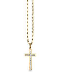 Sydney Evan Women’s Necklaces Gold & Diamond Channel Set Baguette Cross Charm
