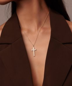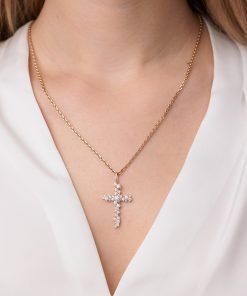 Sydney Evan Women’s Necklaces Gold & Diamond Channel Set Baguette Cross Charm