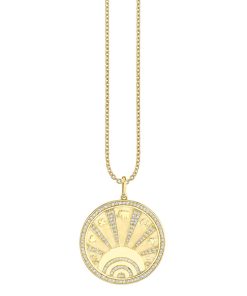 Sydney Evan Women’s Necklaces Gold & Diamond Luck Coin With Rays Charm