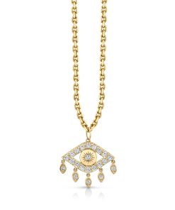 Sydney Evan Women’s Necklaces Gold & Diamond Large Eye With Marquise Eye Fringes Charm