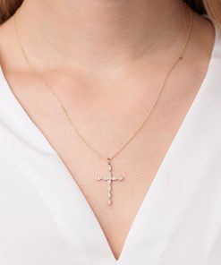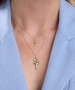 Sydney Evan Women’s Necklaces Gold & Diamond Large Cross Charm | Yellow Gold