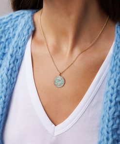 Sydney Evan Women’s Necklaces Gold & Diamond Luck Coin With Rays Charm