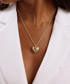 Sydney Evan Women’s Necklaces Gold & Diamond Puffy Icon Wallpaper Heart Charm