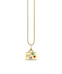 Sydney Evan Women’s Necklaces Gold & Diamond Starburst And Eye Cartouche Charm