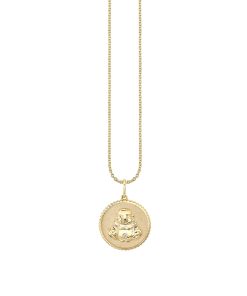 Sydney Evan Women’s Necklaces Gold & Diamond Small Sitting Buddha Coin Charm