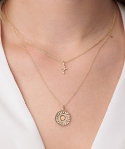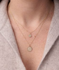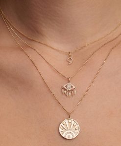 Sydney Evan Women’s Necklaces Gold & Diamond Small Luck Coin With Rays Charm