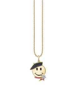 Sydney Evan Women’s Necklaces Gold & Diamond French Happy Face Charm