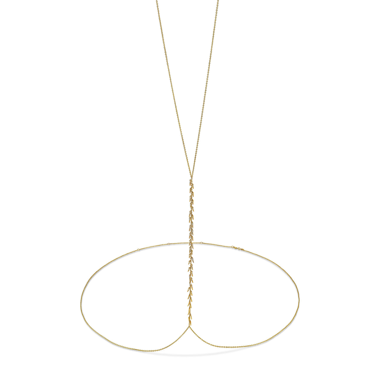 Made with 14k yellow gold and adorned with sparkling diamonds, this body chain is sure to catch the eye and make a statement.