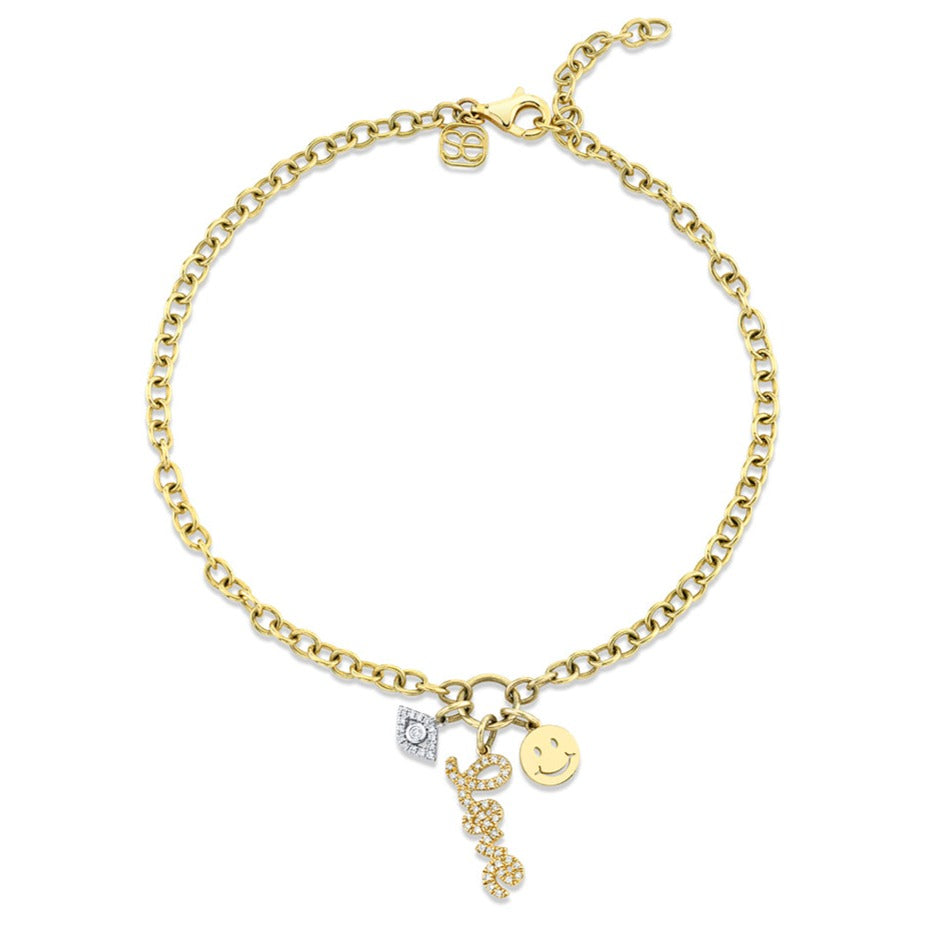 Sydney Evan Women’s Body Jewelry Gold & Diamond Protection, Love & Happiness Anklet