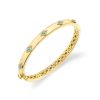Meticulously crafted, the bracelet is available in three sizes—6″, 6.25″, and 6.5″ diameters—ensuring a perfect fit. Measuring approximately 1/4″ high by 2 1/2″ wide, its sleek and lightweight design makes it ideal for layering or wearing solo as a statement of style and symbolism.