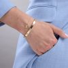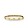 Crafted from lustrous 14k yellow gold, the bangle offers a harmonious balance of elegance and subtle sparkle. Available in sizes 6″, 6.25″, and 6.5″ in diameter, it is designed for a perfect fit. Measuring approximately 1/4″ in height and 2 1/2″ in width, the slim yet striking silhouette makes it ideal for layering or wearing as a standalone piece.