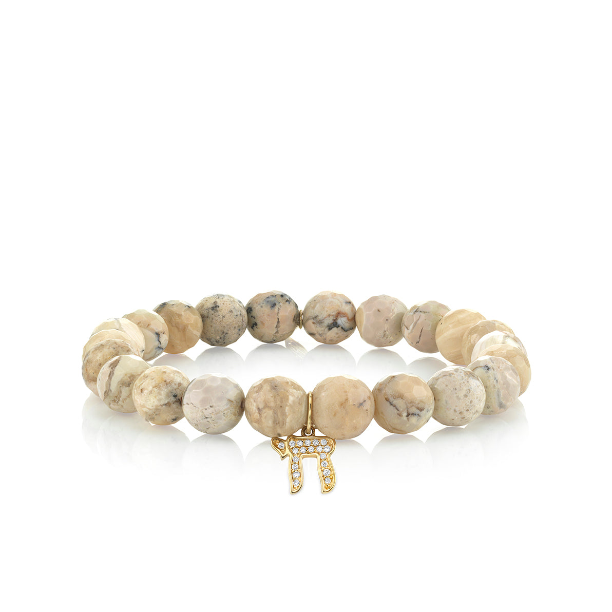 Be the first to review “Sydney Evan Women’s Bracelets Gold & Diamond Chai Charm On African Opal” Cancel reply