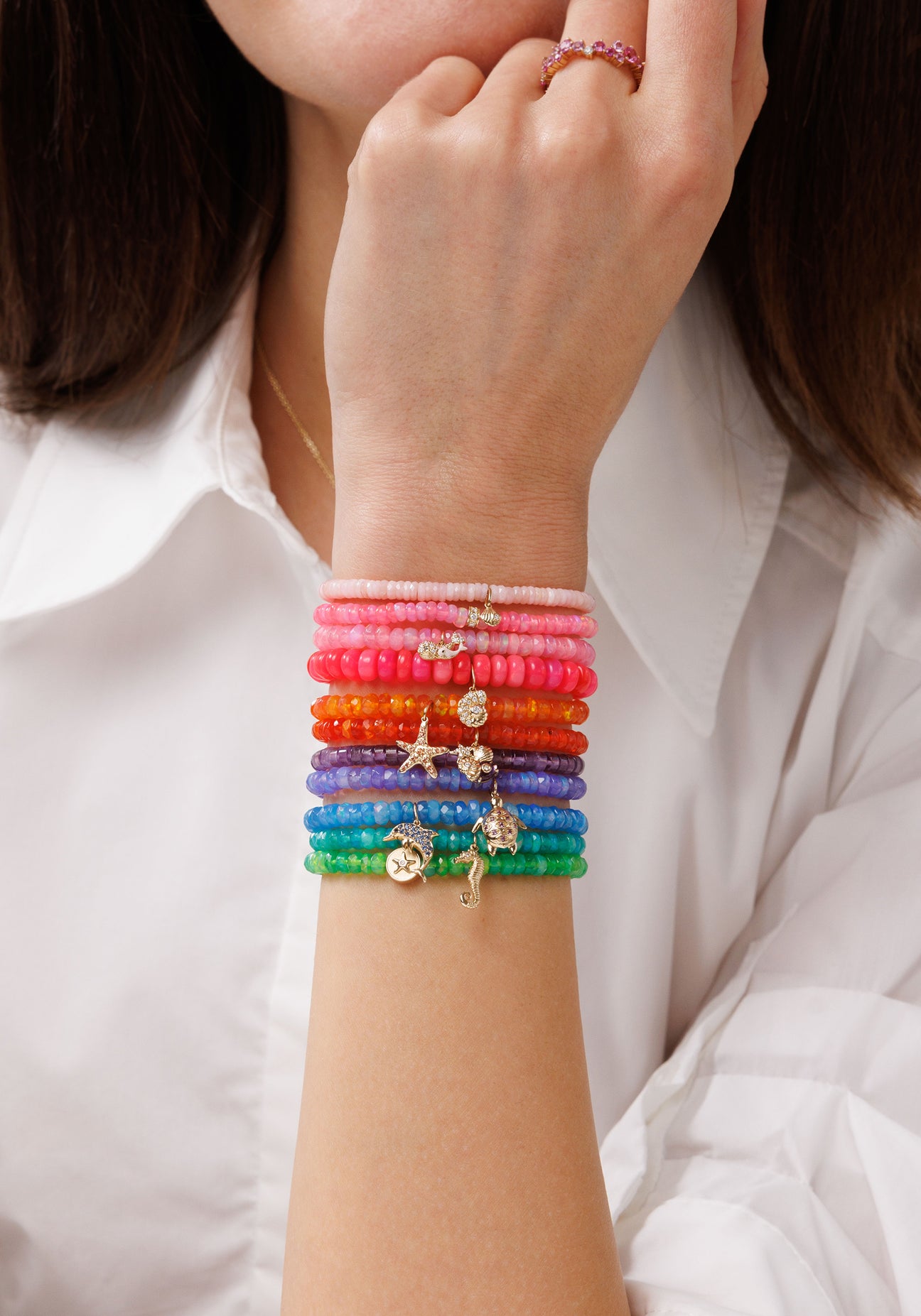 Every bracelet is meticulously assembled with a stretch cord for a comfortable, flexible fit, and is completed with our signature 14k gold SE logo charm, signifying authenticity and attention to detail.