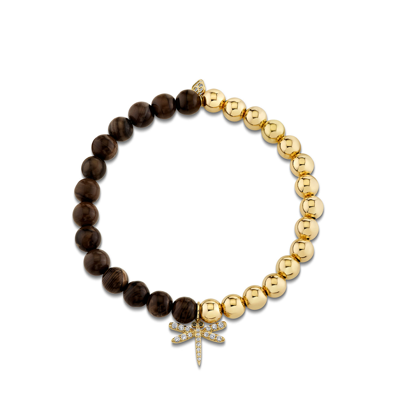 Sydney Evan Women’s Bracelets Gold & Diamond Dragonfly On Jasper And Gold Beads