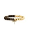 Crafted from 14k gold, this bracelet features 6mm yellow gold round beads paired with smooth 6mm brown zebra jasper beads, highlighted by a gold and diamond dragonfly charm. The blend of warm gold tones, earthy jasper, and sparkling diamonds creates a harmonious design that feels both elegant and naturally captivating.