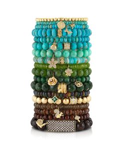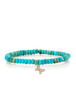 Sydney Evan Women’s Bracelets Gold & Diamond Small Turtle On White Turquoise Heishi