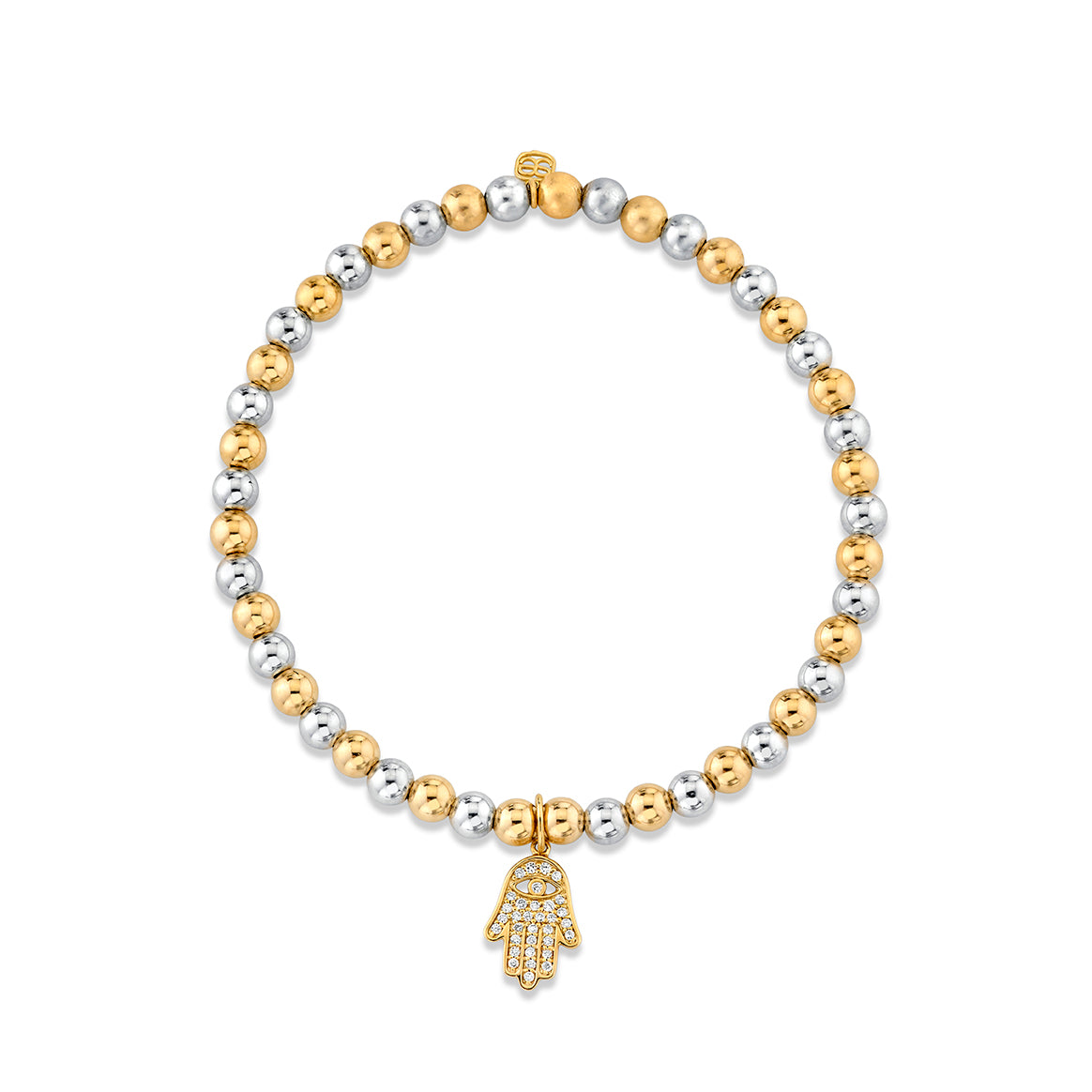 Sydney Evan Women’s Bracelets Gold & Diamond Hamsa On Two-tone Gold Beads