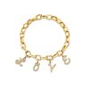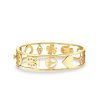Radiating timeless elegance, this 14k yellow gold and diamond large hinge bangle showcases all our signature icons, each symbolizing the essence of strength, love, and transformation. Meticulously crafted to perfection, the shimmering diamonds accentuate the meaningful motifs, creating a piece that tells a story of connection and individuality. Designed exclusively in size 6.25″, this bracelet is a wearable work of art that combines enduring craftsmanship with profound symbolism, making it a true heirloom treasure.