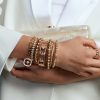 Sydney Evan Women’s Bracelets Gold & Diamond Channel Set Baguette Bar On Tan Mother Of Pearl
