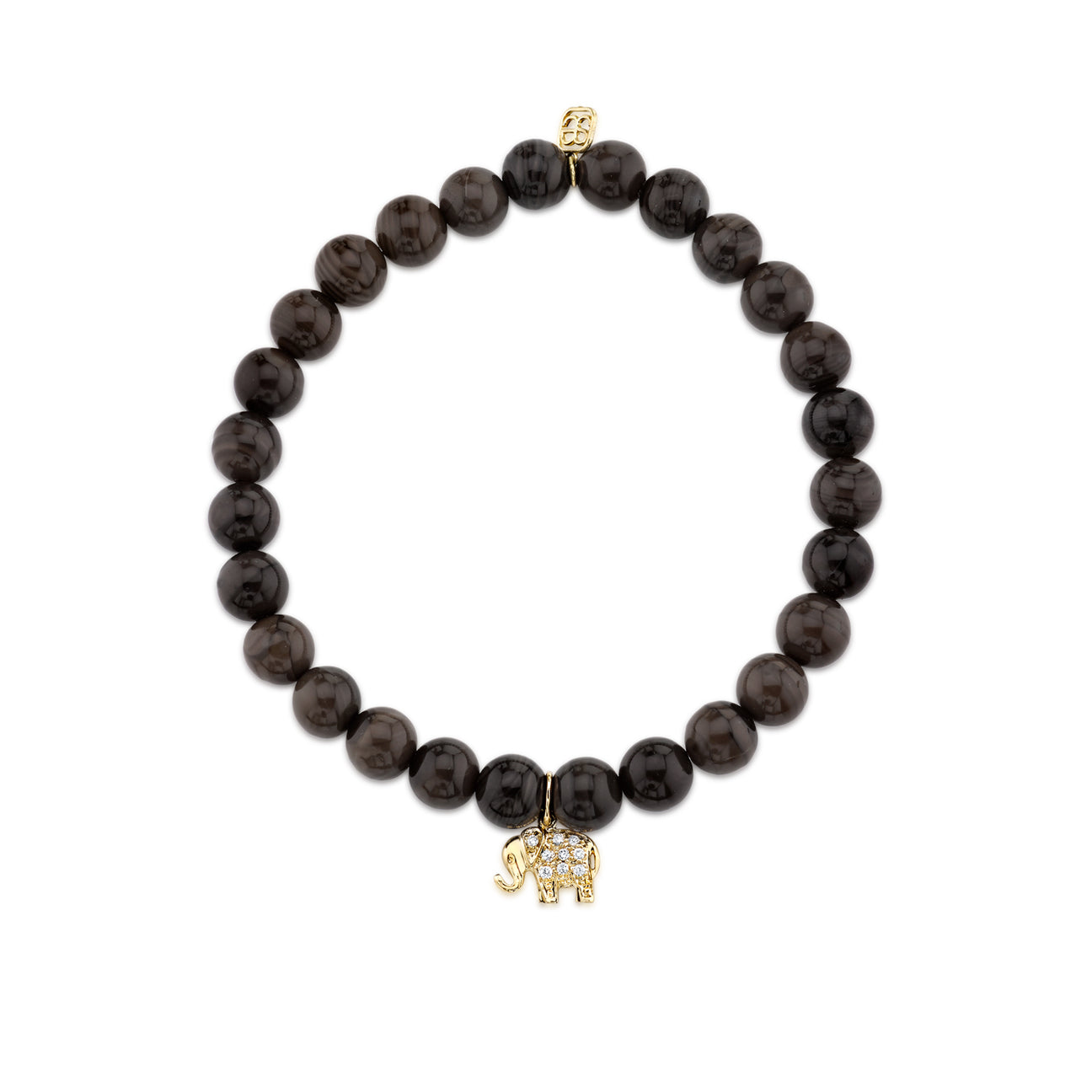 Sydney Evan Women’s Bracelets Gold & Diamond Mini Elephant On Brown Jasper