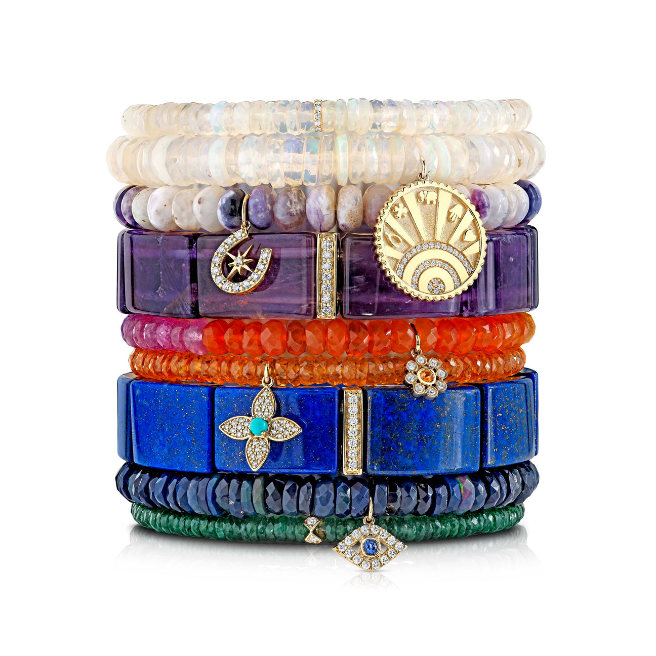Introducing our latest addition to the Sydney Evan collection – the Gold & Diamond Rondelle on Ethiopian Opal bracelet. Crafted with 14k yellow gold and adorned with a sparkling diamond rondelle, this bracelet exudes elegance and sophistication. The focal point of this piece is the 5mm faceted Ethiopian opal beads, each one unique in color and shape, making every bracelet one-of-a-kind. To ensure a comfortable fit, our beaded bracelets are strung on a stretch cord and finished with our signature 14k gold SE logo charm. Embrace the beauty of natural stones with this stunning Gold & Diamond Rondelle on Ethiopian Opal bracelet. All Sydney Evan beaded bracelets are strung on a stretch cord along with our 14k gold SE logo charm. Beads color and shape may vary slightly due to the nature of the precious and semi-precious stones. Standard size is approximately 6.25′, for all custom size requests, please contact us.