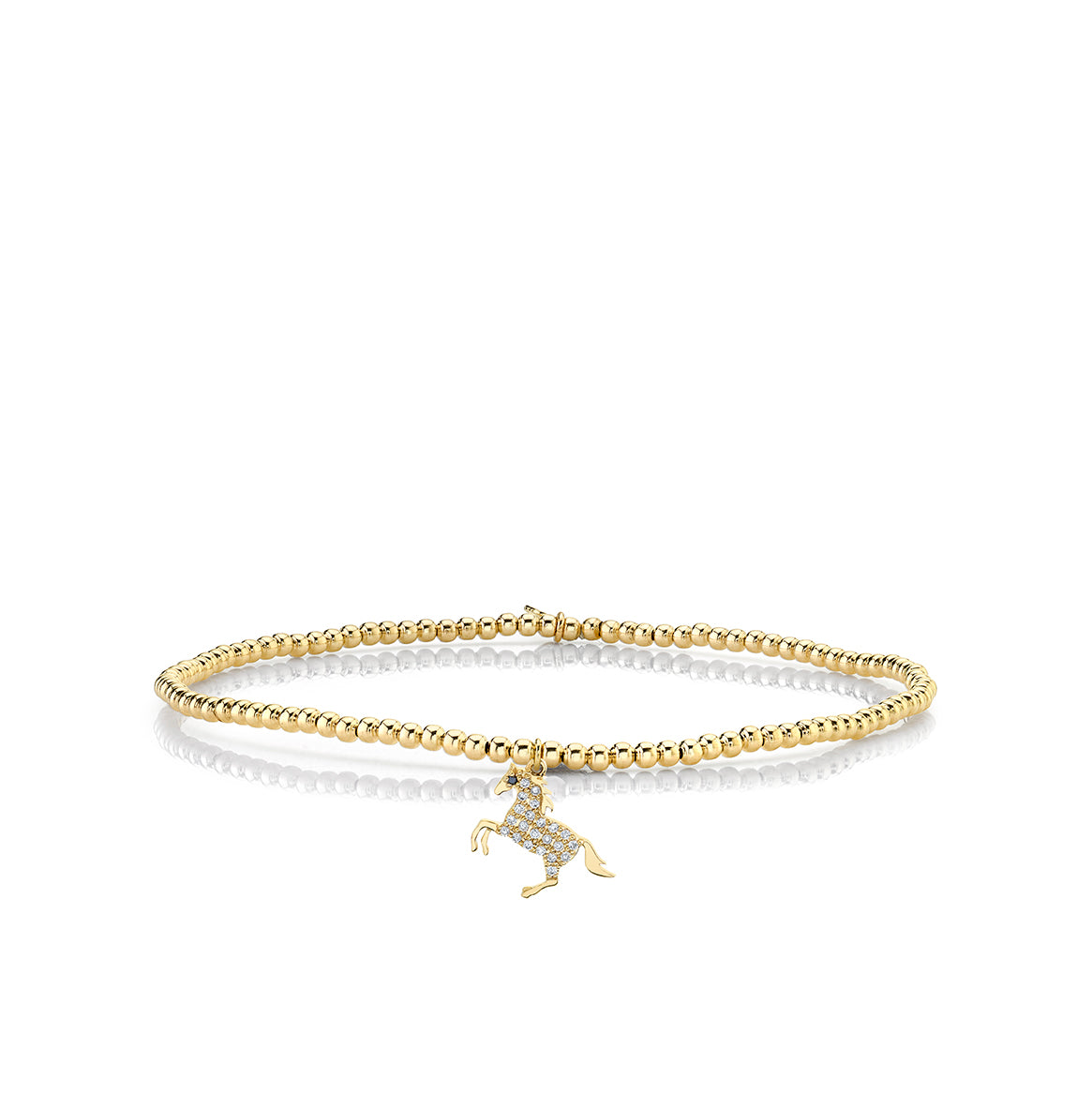 Sydney Evan Women’s Bracelets Gold & Diamond Small Horse On Gold Beads