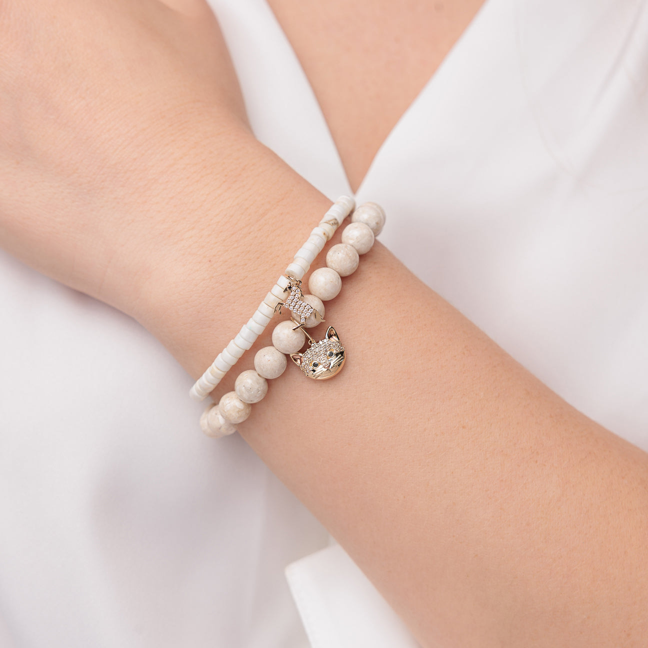 Sydney Evan Women’s Bracelets Gold & Diamond Small Horse On White Turquoise Heishi