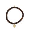 Sydney Evan Women’s Bracelets Gold & Diamond Small Monstera Leaf On Dark Brown Heishi