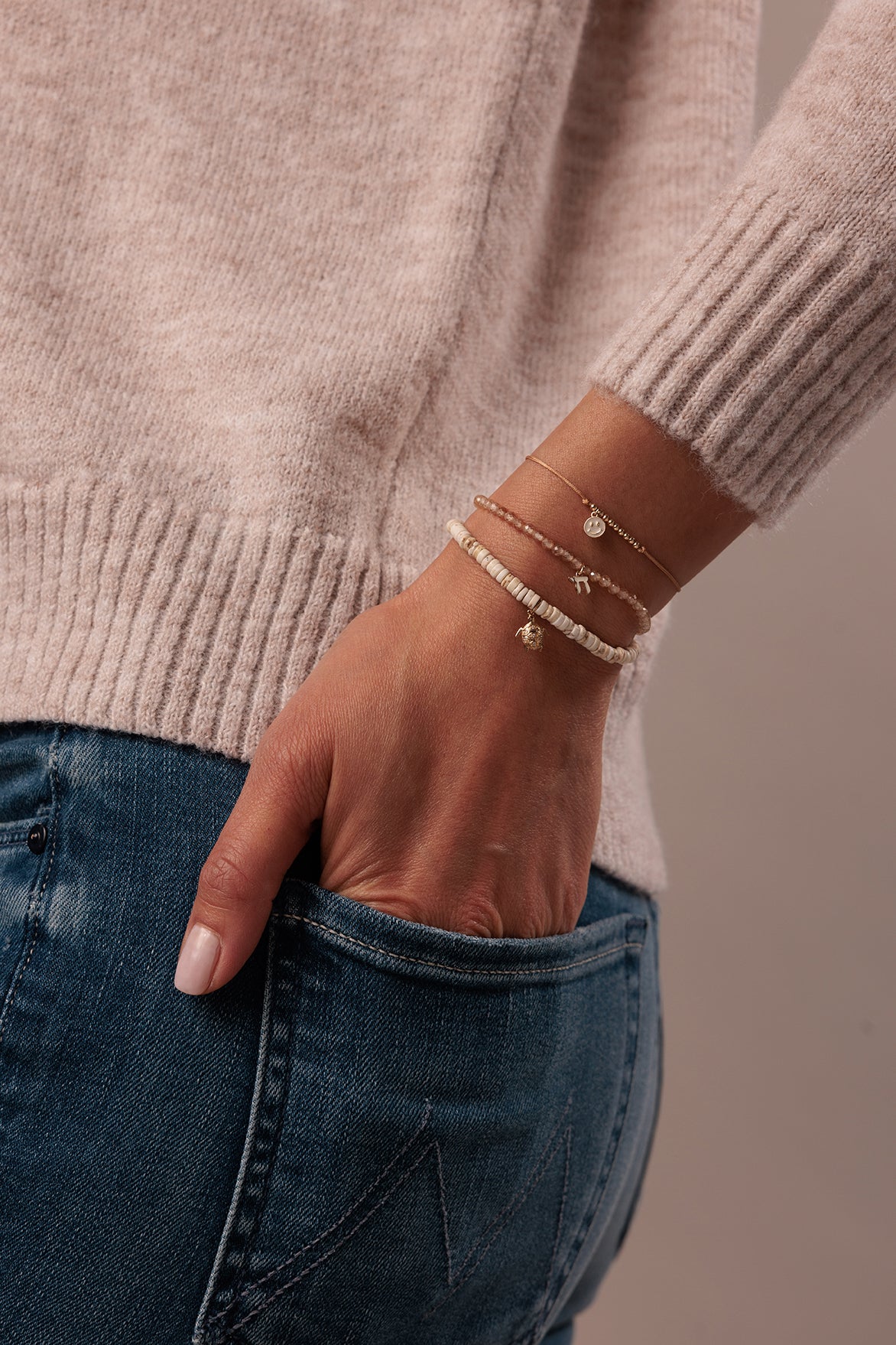 This bracelet is perfect for those who appreciate the beauty of nature and want to add a touch of sophistication to their style. It is versatile enough to be worn on its own or stacked with other bracelets for a more layered look. With its high-quality materials and intricate design, this Gold & Diamond Small Turtle on White Turquoise Heishi bracelet is a must-have for any jewelry collection.