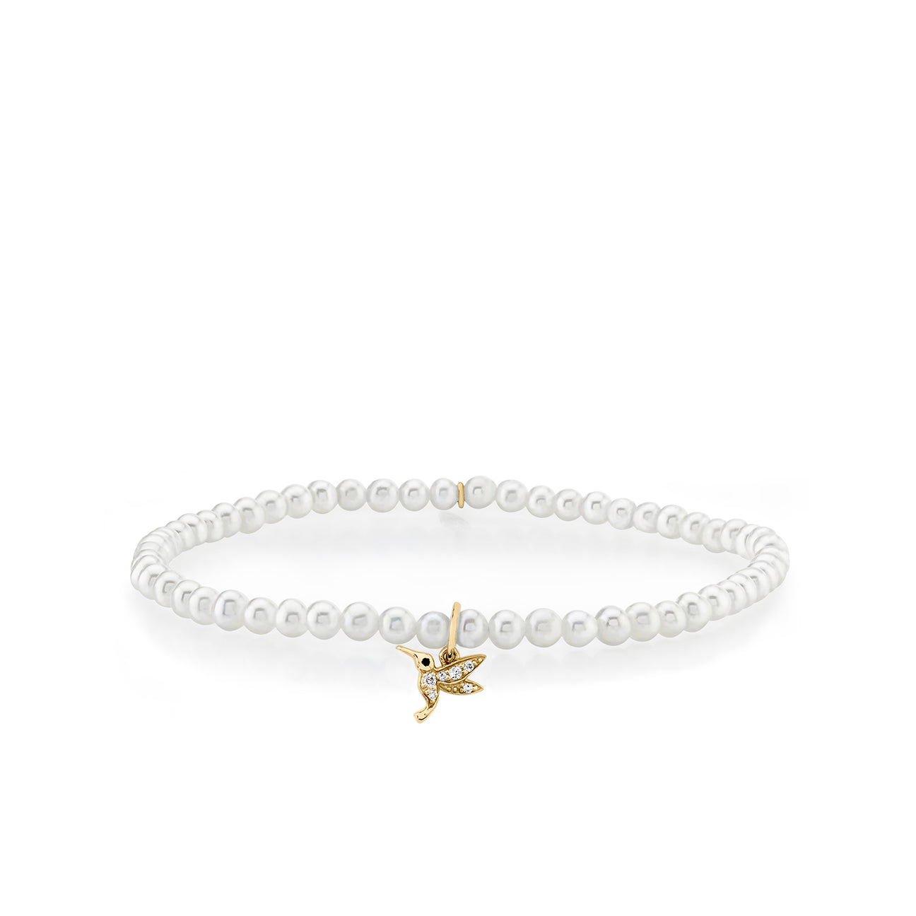 Sydney Evan Women’s Bracelets Gold & Diamond Tiny Hummingbird On Pearls