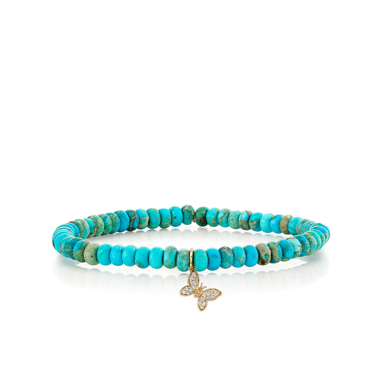 Sydney Evan Women’s Bracelets Gold & Diamond Tiny Pave Butterfly On Turquoise