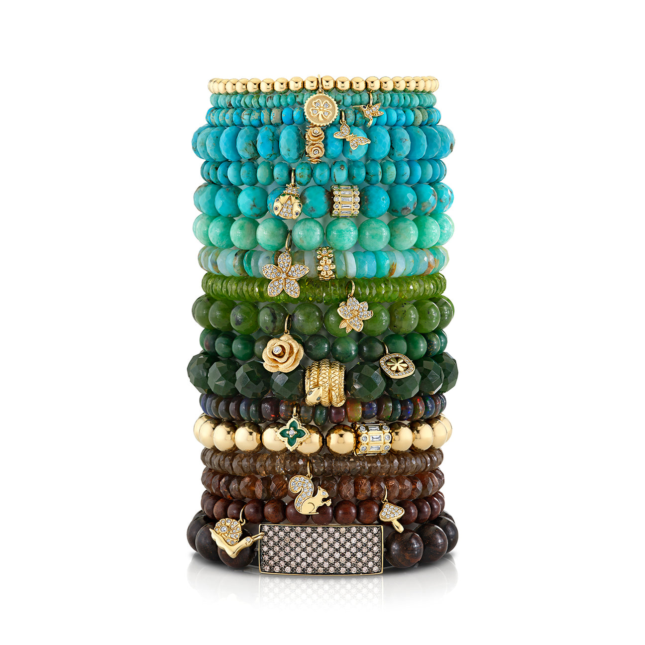 Each bracelet is meticulously crafted with a durable stretch cord and adorned with our signature 14k gold SE logo charm, adding a distinctive touch to your collection.