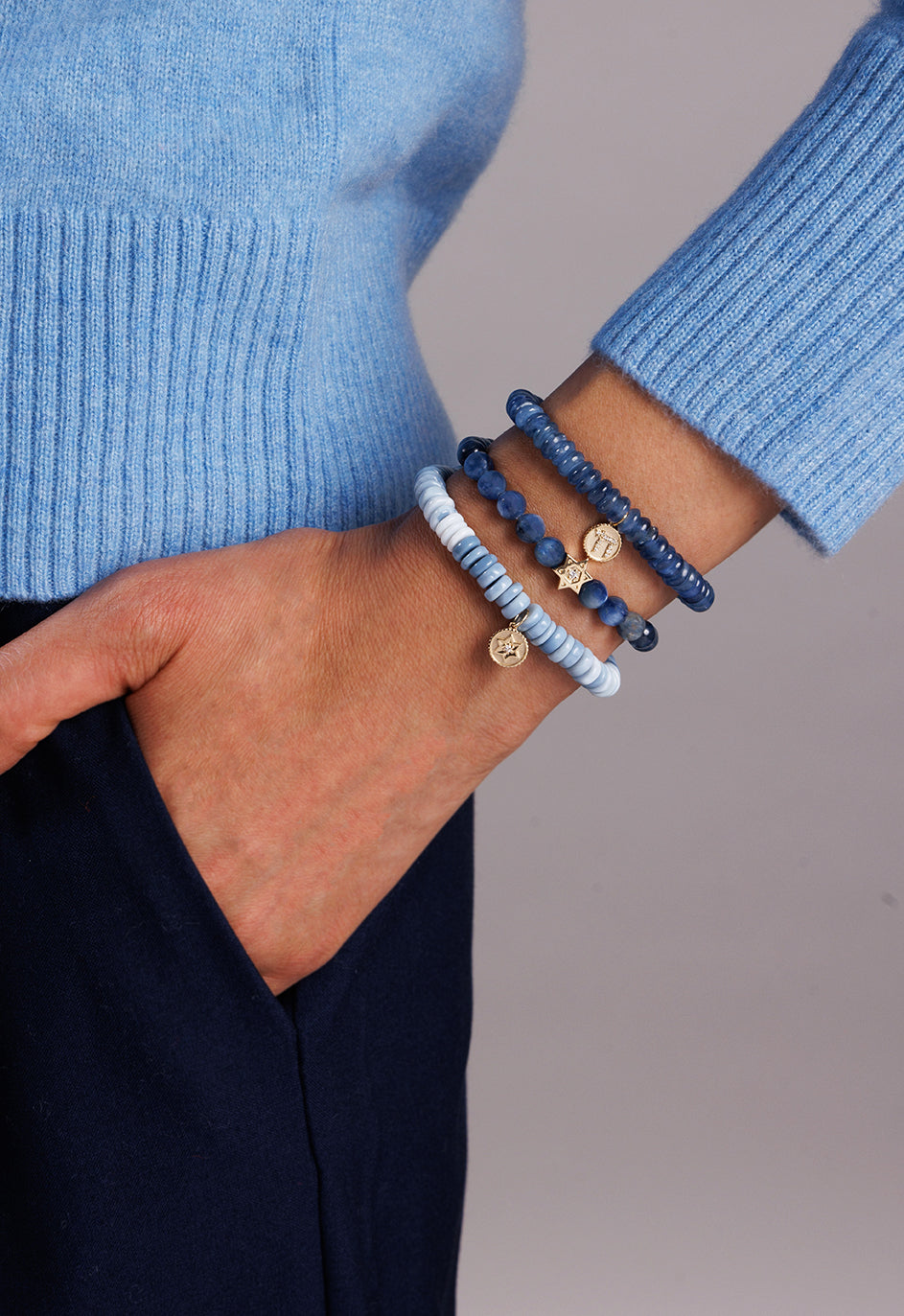 Experience timeless elegance with this exquisite 14k yellow gold and diamond medallion, featuring a delicate Jewish star design, beautifully set against vibrant 5mm blue opal heishi beads. The medallion measures approximately 3/8″ by 3/8″, offering a refined yet subtle sparkle. Each Sydney Evan bracelet is meticulously crafted and hand-strung on a resilient stretch cord, complete with our signature 14k gold SE logo charm for a touch of sophistication. Embrace the unique beauty of natural bead variations in color and shape, which make every piece truly one-of-a-kind. Our standard size comfortably fits wrists around 6.25 inches, with custom sizing available upon request for a perfect, personalized fit.
