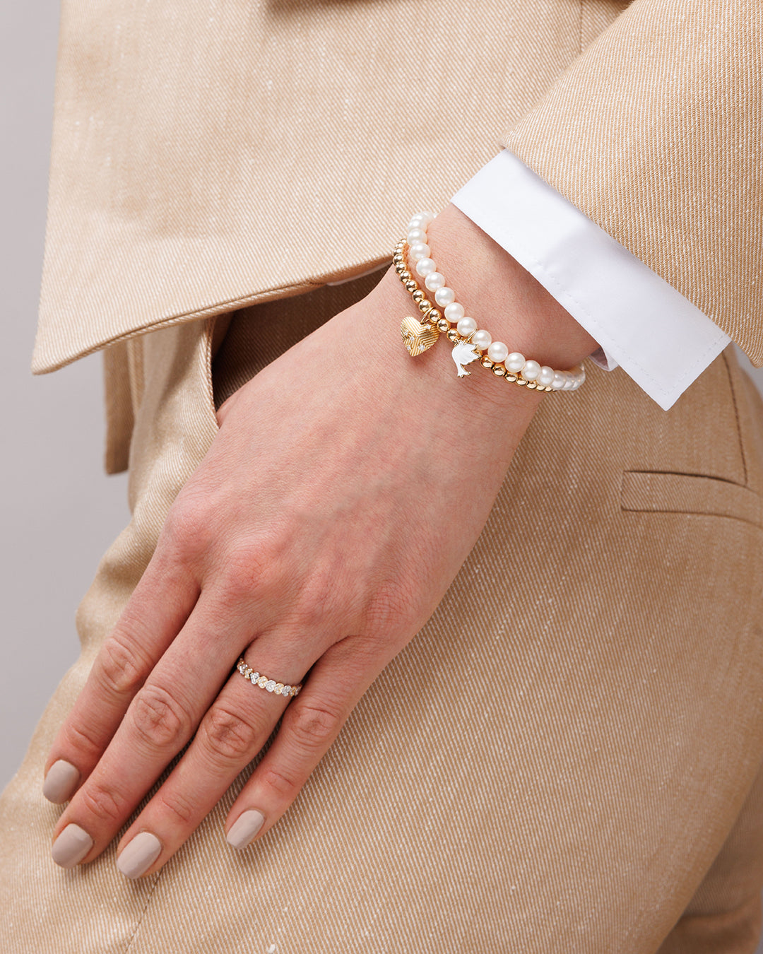 Each piece is carefully crafted with a stretch cord for comfort and durability, and is finished with our signature 14k gold SE logo charm, adding a touch of sophistication.