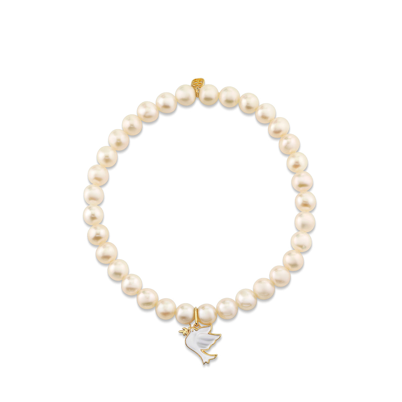 Sydney Evan Women’s Bracelets Gold & Enamel Dove On Pearls