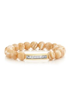 Sydney Evan Women’s Bracelets Gold & Diamond Channel Set Baguette Bar On Tan Mother Of Pearl