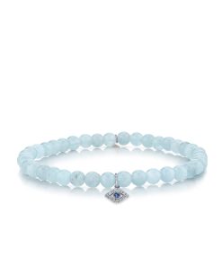 Sydney Evan Women’s Bracelets White Gold & Bezel Diamond Eye With Sapphire On Aquamarine