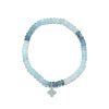 14k yellow gold and blue enamel mini Moroccan flower charm on 5mm aqua faceted beads. Charm measures approximately 1/3″ in diameter. Beads color and shape may vary slightly due to the nature of the precious and semi-precious stones. Sydney Evan beaded bracelets are strung on a stretch cord along with our 14k gold SE logo charm. Standard size is approximately 6.25″, for all custom size requests, please contact us.|+Care Instructions