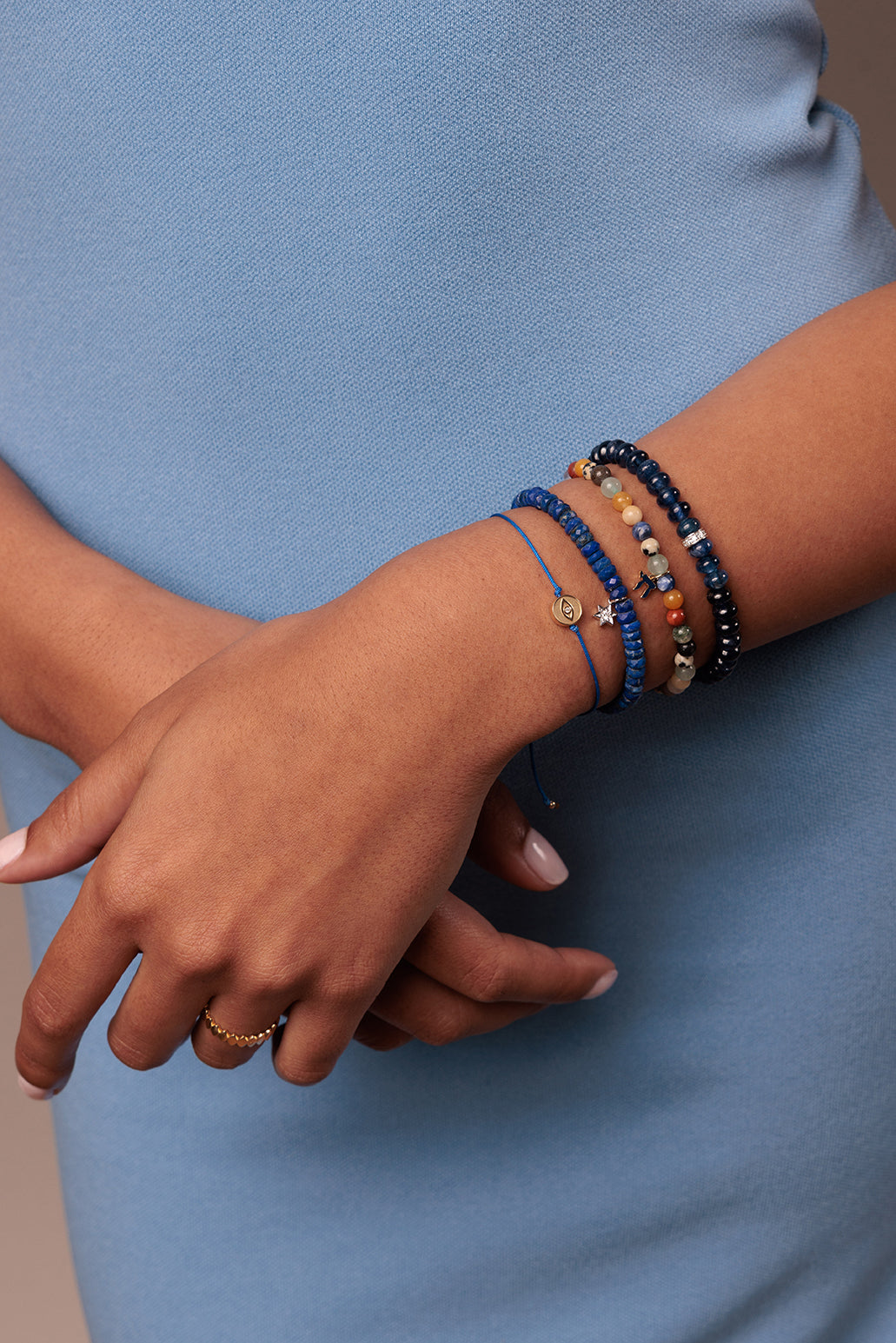 Sydney Evan Women’s Bracelets Gold & Enamel Tiny Chai On Semi Precious Stones