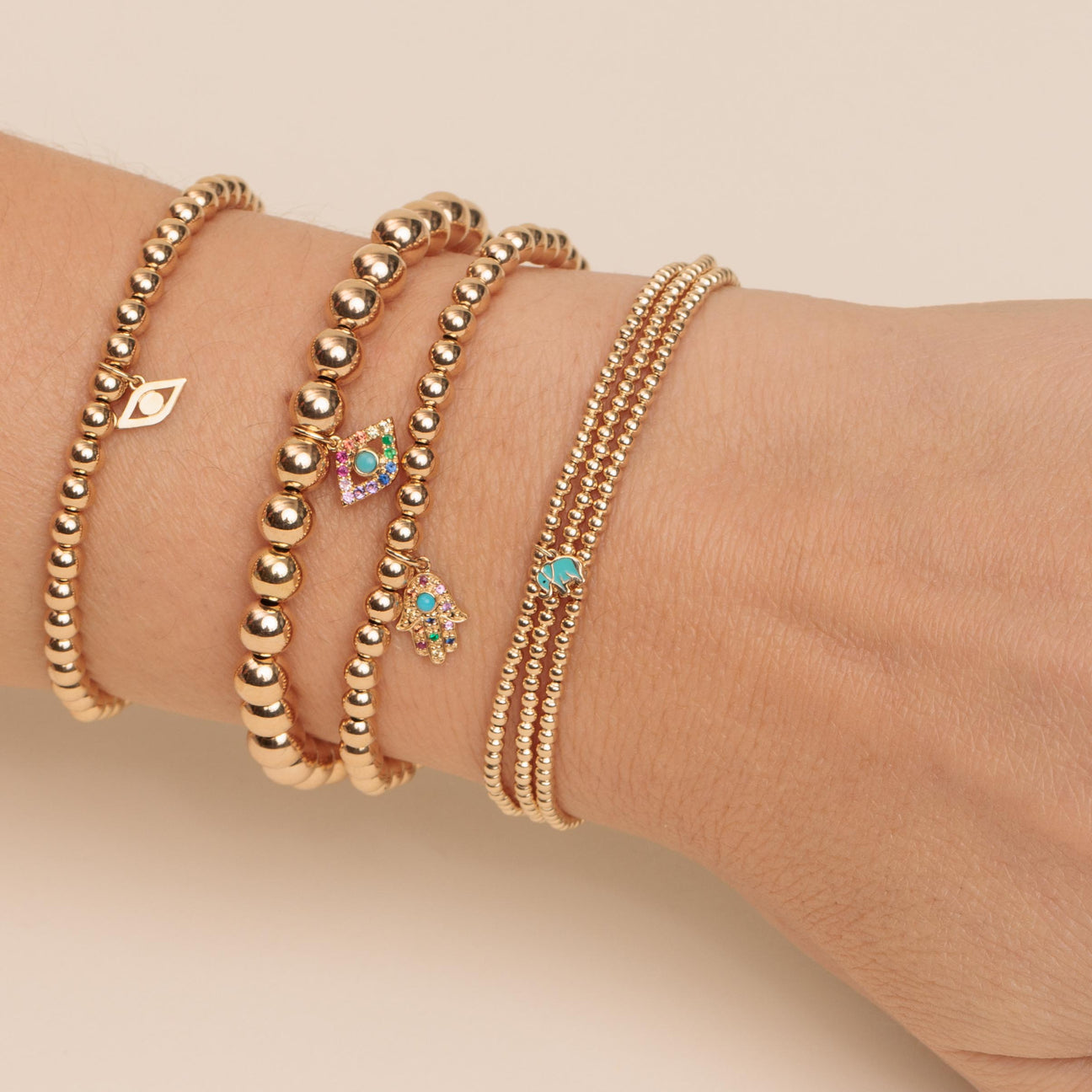 Sydney Evan Women’s Bracelets Gold & Enamel Tiny Elephant On Gold Beads