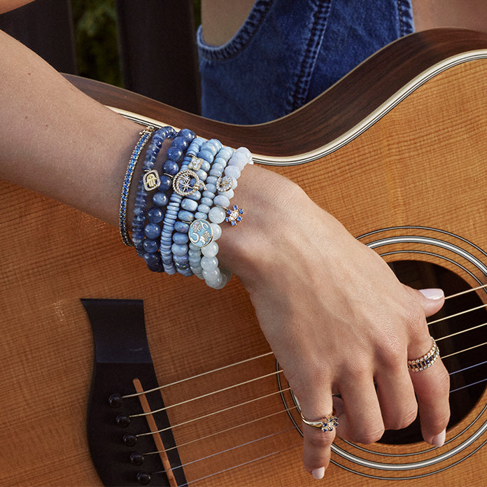Finished with our signature 14k gold Sydney Evan logo charm and strung on a durable stretch cord for easy, comfortable wear. Due to the natural properties of the stones, variations in color and shape make each bracelet one-of-a-kind.