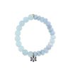 The charm is paired with a unique combination of half 8mm faceted and half 8mm smooth aquamarine beads. Known as the “stone of serenity,” aquamarine is believed to calm the mind, soothe the spirit, and encourage clear communication. The contrast of textures—sparkling facets and smooth polish—adds depth and dimension to this harmonious design.