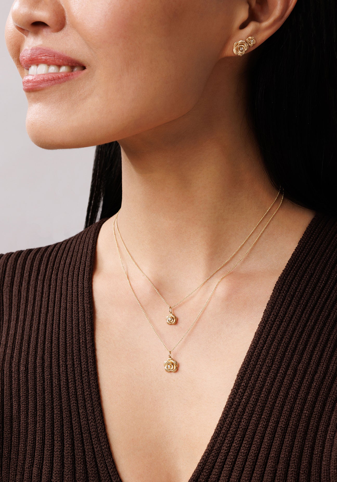 Sydney Evan Women’s Earrings Gold & Bezel Diamond Small Rose Stud