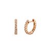 Discover understated elegance with these 14k yellow gold huggie hoops, featuring sparkling round bezel-set diamonds. Measuring approximately 3/8″ in diameter, these classic hoops add a refined touch of brilliance to any outfit.